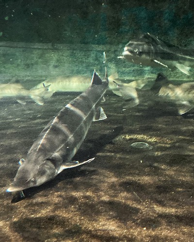 私が出かけた時は、15時半から古代魚への餌やりが行われていました。